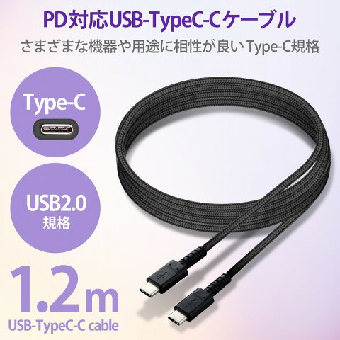 ■コネクタ形状:USB Type-Cオス-USB Type-Cオス ■対応機種:USB Type-C端子を持つパソコン・充電器・モバイルバッテリーおよび、USB Type-C端子を持つスマートフォン・タブレットなど ■ケーブル長:1.2m ※コネクタ含まず ■ケーブル太さ:3.8mm ■規格:USB2.0規格正規認証品 ■対応転送速度:最大480Mbps ※理論値 ■パワーデリバリー対応:○ ■プラグメッキ仕様:金メッキピン ■シールド方法:2重シールド ■カラー:ブラック ■パッケージ形態:ブリスター【代引きについて】こちらの商品は、代引きでの出荷は受け付けておりません。