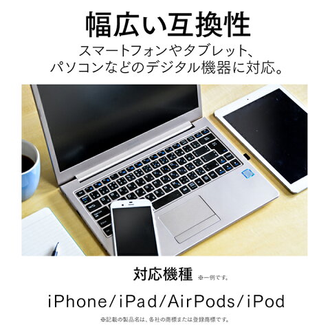 USB Type-A端子搭載パソコン・AC充電器などとLightningコネクタ搭載機器との接続が可能。