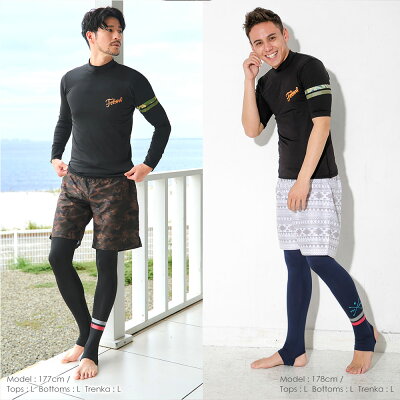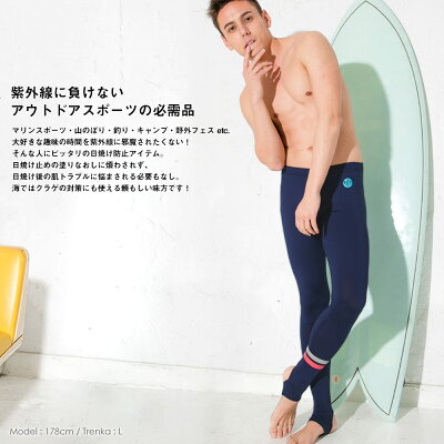 メーカー希望小売価格はメーカーカタログに基づいて掲載しています メンズ ラッシュガード トレンカ 商品詳細 メンズ 男性用 ラッシュガード トレンカ sum-1 足首までしっかりUVガード! 【サイズ】: S M L XL XXL 【紫外線(UV)カット率】: 98%以上 UPF50+(最高値) 【色】:2色 ブラック(黒) ネイビー(紺) ●ウエスト部分は幅3cmのゴムベルト使用でしっかり密着! ●ほつれや穴があきやすい股下部分もしっかり縫製 ●かかとの穴は穿いた時の違和感を少なくするためフラットシーマー加工を採用! ●生地はきめの細かいソフトな肌触りで伸縮性も抜群! 速乾性にすぐれた糸を使用したドライ速乾素材なので濡れたままの不快感も軽減! ●左腰部分のブランドロゴと左足首部分のラインプリントがアクセントに。