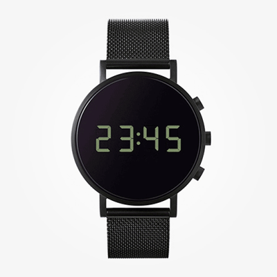 この時計は、典型的なデジタルの数字表記になっていてミニマルなケースデザインと漆黒の文字盤の上に無駄なく配置されています。