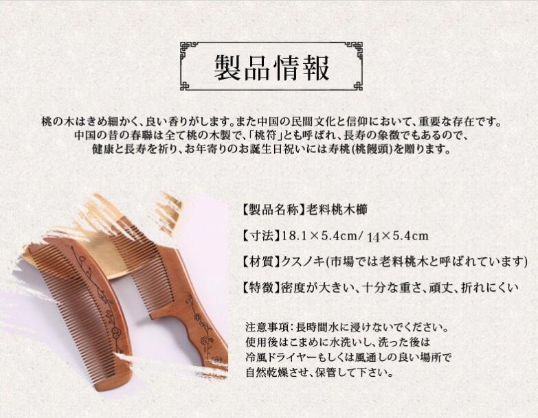 ショップからのメッセージ 天然の桃木で作られた、髪や頭皮に優しい櫛です。