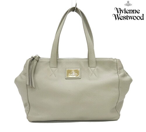 【Vivienne Westwood】ヴィヴィアンウエストウッド モシークトートバッグ レザー グレー系 ベージュ系 ショルダーバッグ ハンドバッグ【中古】FB1220