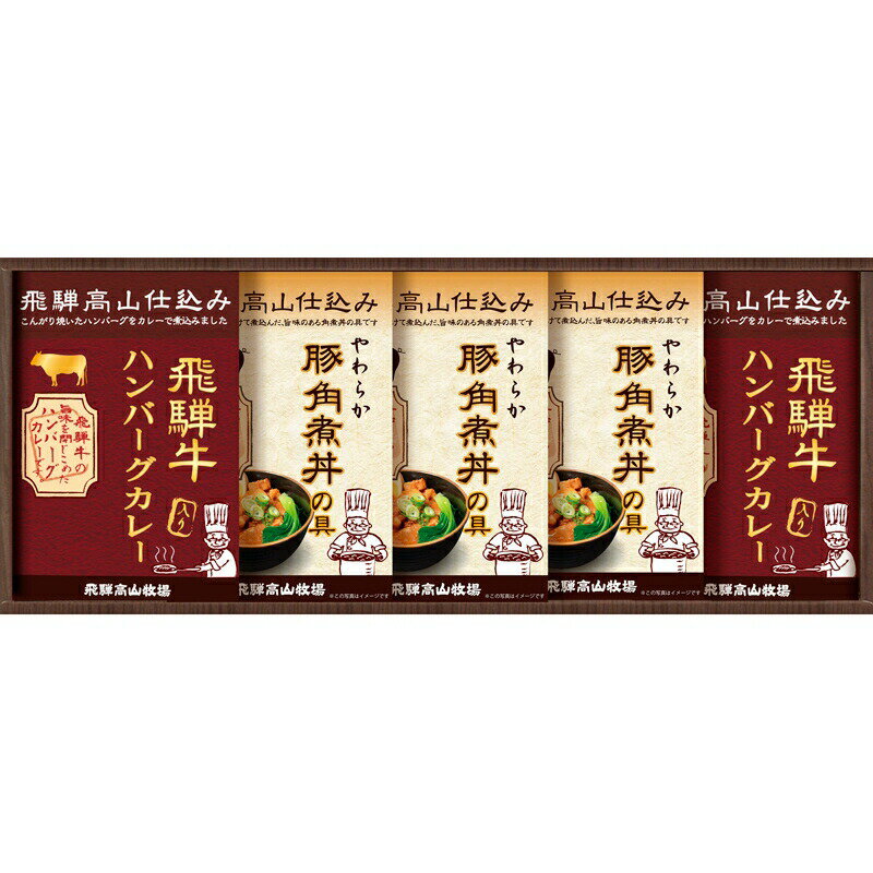■箱サイズ/箱入重量21×54×6cm/1.32kg■セット内容煮卵入り豚角煮丼の具(180g)×3、飛騨牛入りハンバーグカレー(190g)×2■賞味期間常温6ヶ月■アレルゲン卵・乳・小麦■ブランド名飛騨高山牧場■送料について■送料 送料無料。