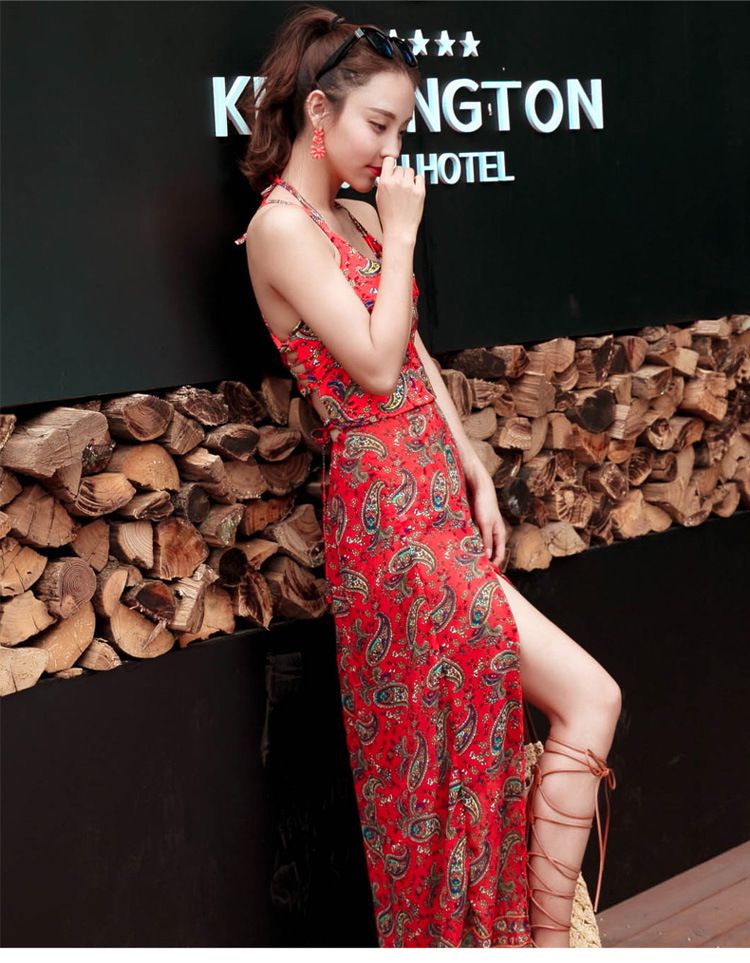 商品説明 ビキニとロングワンピースの3点セット スタイルアップのサイドスリットでセクシーに決まる 大きなスリットで歩くたびに美脚をチラ見せ♪
