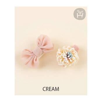 ベビーミッセルヘアピンセット 商品情報 ■商品名/説明 :ベビーミッセルヘアピンセット ▲カラー:CREAM,PINK ■サイズ:FREE モチーフの横:4cm ピンサイズ:3cm お勧め対象年齢:3ヶ月~24ヶ月 ●素材:POLYESTER 100% ●原産地:韓国 【モデル情報】 12ヶ月 頭周り:45cm 体重:9.6kg 身長:76.3cm 着用サイズ:FREE ■注意■ *サイズは平置き計測となっておりますので、1〜2cmの誤差が生じる場合がございます。