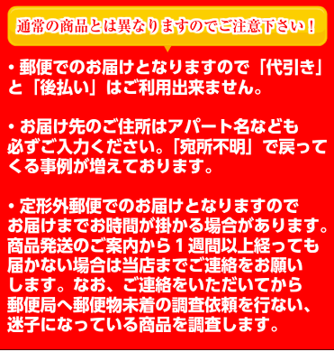 発送方法 メール便(送料無料) お届け日 ご指定で出来ません のし等 お受け出来ません 備考 当店では全ての商品に納品書・請求書は同封致しませんので、ご希望の場合は、お申し付けくださいませ。