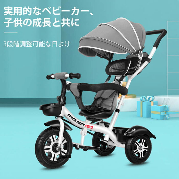 三輪車 4in1 子供用三輪車 三輪車のりもの 座面回転 対面可能 サンシェード付き コントロールバー付き おもちゃ キッズバイク かじとり 乗用玩具 足けり 幼児用 軽量 プレゼント 子供の日ギフト