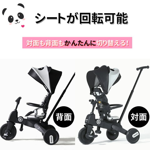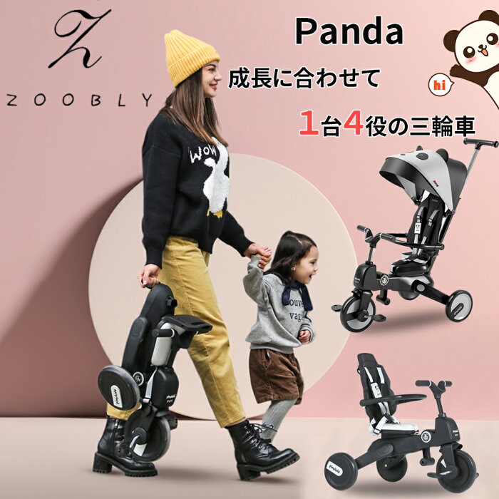 【1年保証 】ZOOBLY 折りたたみ パンダ 三輪車 子供用三輪車 4IN1 かわいい バッグ付 かじとり 1~6歳子供用 おもちゃ 対面可能 座面回転 乗り物 プレゼント 乗用玩具 サンシェード シートベルト 安全ガード 手押し棒 コンパクト キッズバイク 幼児用 軽量 おしゃれ